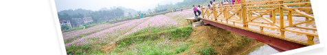 “花溪”步棧道是一條無扶手木質步棧道,其形似鄉野溪流,蜿蜒在花海之中,游人踱...