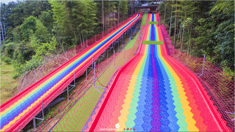 炫彩速滑,遠眺似兩道長虹依山臥于花海樂園景區內,全長120米,高低落差45米。在這里可...